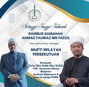 KUMS merakamkan setinggi-tinggi penghargaan atas sokongan dan keterbukaan YB Menteri, serta komitmen beliau dalam memperkukuh peranan institusi ulama dan memperjuangkan isu Palestin serta umat Islam sejagat.