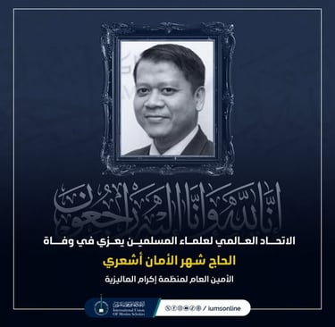 Ucapan Takziah dari Kesatuan Ulama Muslimin Sedunia atas Pemergian Almarhum Haji Shahr Aman Asy'ari, Setiausaha Agung IKRAM Malaysia