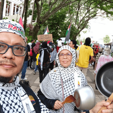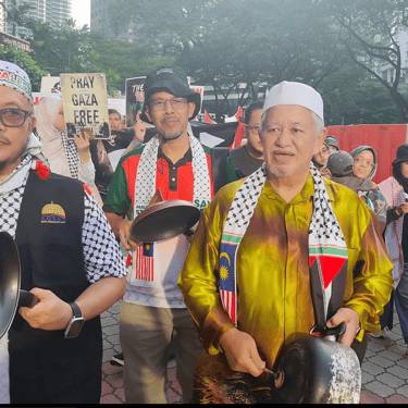 Para peserta mengetuk periuk dan Kuali sebagai tanda emphati terhadap penduduk GAZA yang kelaparan dan Kebuluran. Ia bukan sekadar ketukan kuali, ia adalah ketukan dari sanubari peserta sebagai tanda emphati yang mendalam.