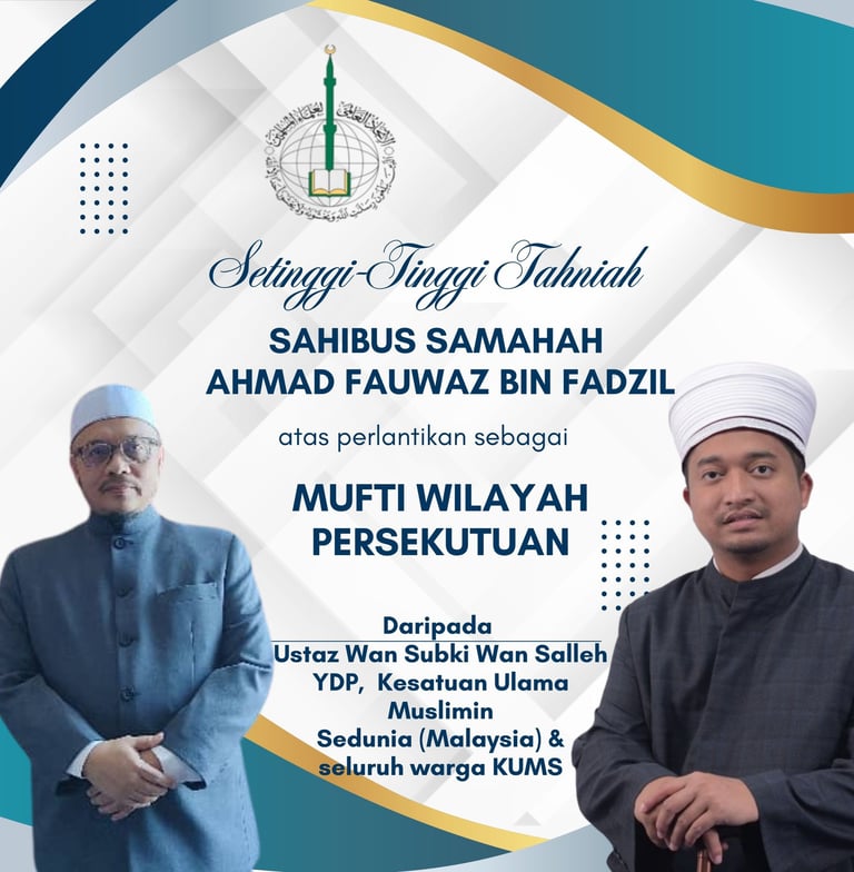 Kesatuan Ulama Muslimin Sedunia (Malaysia) (KUMS) telah membuat kunjungan hormat ke pejabat Menteri di Jabatan Perdana Menteri (Hal Ehwal Agama) YB Senator Dato' Setia Dr. Hj Mohd Na'im Haji Mokhtar pada 15 Julai 2025 di Putrajaya.