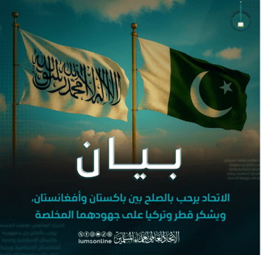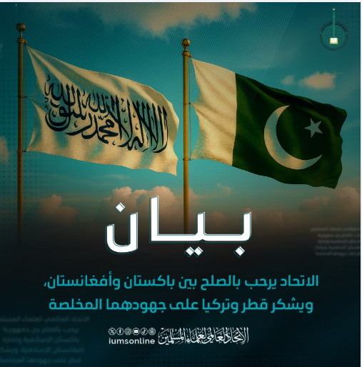 Kesatuan Ulama Muslim Sedunia mengalu-alukan perdamaian antara Republik Islam Pakistan dan Emirit Islam Afghanistan, serta merakamkan penghargaan kepada Qatar dan Turkiye atas usaha ikhlas mereka